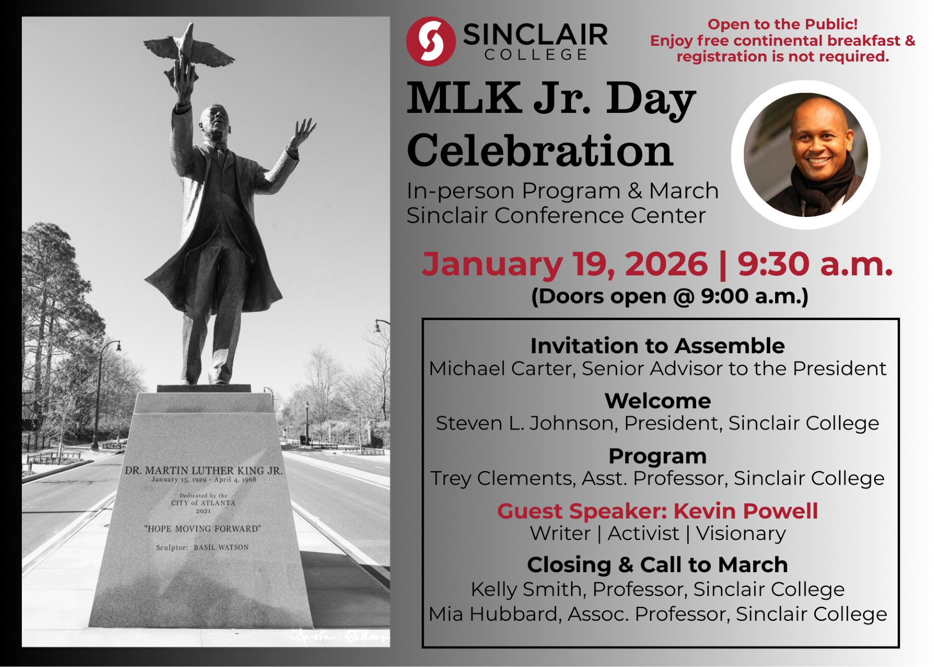 MLK Memorial March Monday, January 19, 2026 March starts at 10 a.m. Location: Assemble at 1323 W. Third St., Dayton, ...
