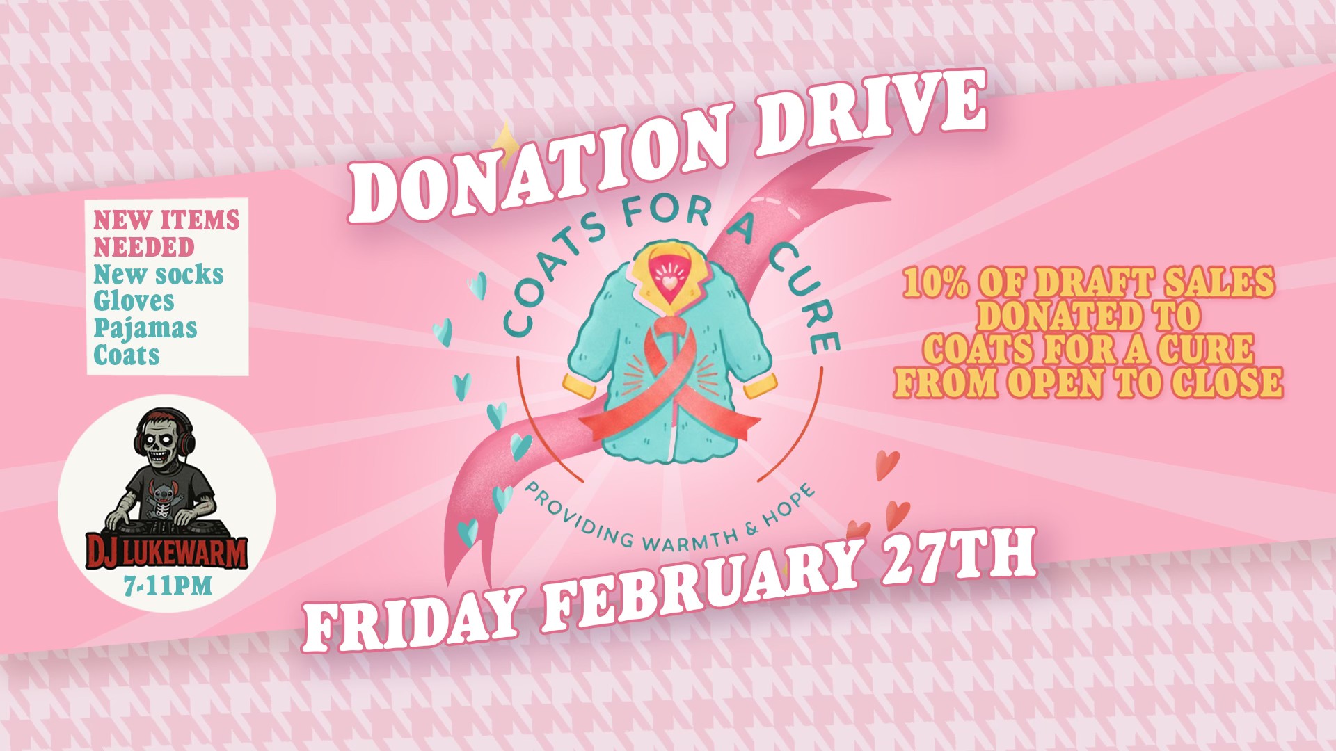 Join us as we help Coats For A Cure gather cold weather clothing for folks that need it on Friday, ...