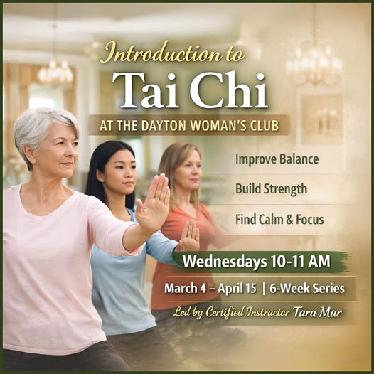 Experience the traditional art of Tai Chi in the beautiful setting of The Dayton Woman’s Club ballroom, led by Tara ...