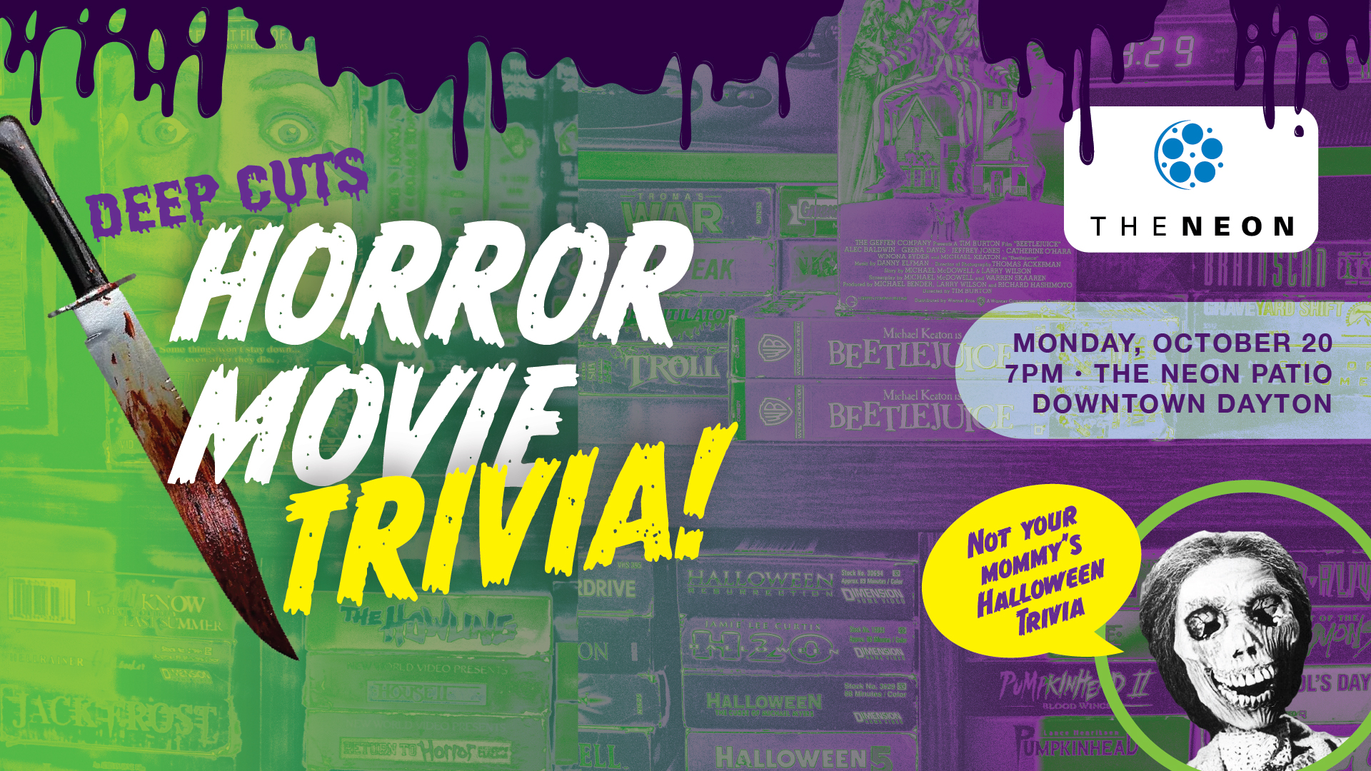 RESERVE YOUR TEAM'S TABLE NOW: https://forms.gle/oMtjVp9L8xyTjGPE8 Horror Movie Trivia! DEEP CUTS Monday, October 20 • 7:00 PM On the beautiful patio of The ...