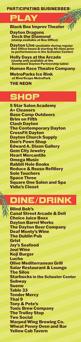 Downtown Dayton’s small businesses need our help now, more than ever! This holiday season, while you’re celebrating and shopping small and local, you can Play, Shop, & Dine your way to some easy money to spend on yourself!