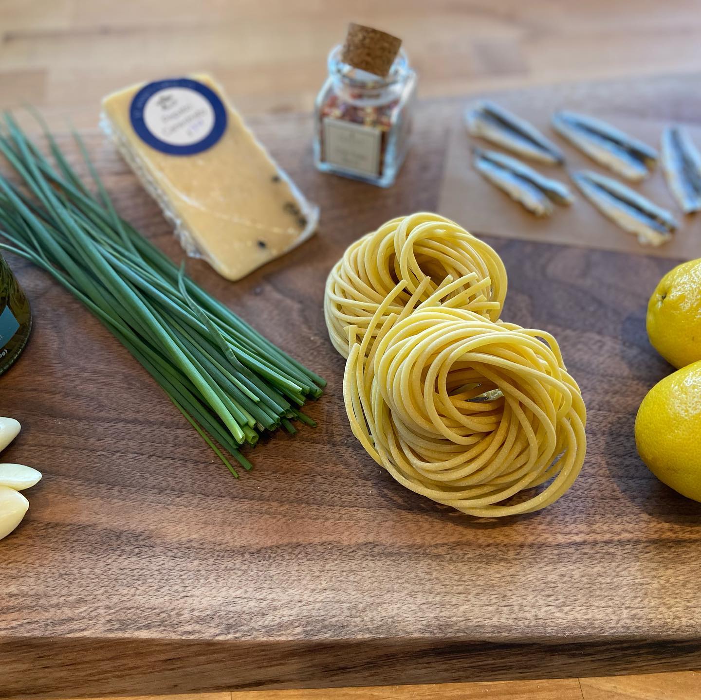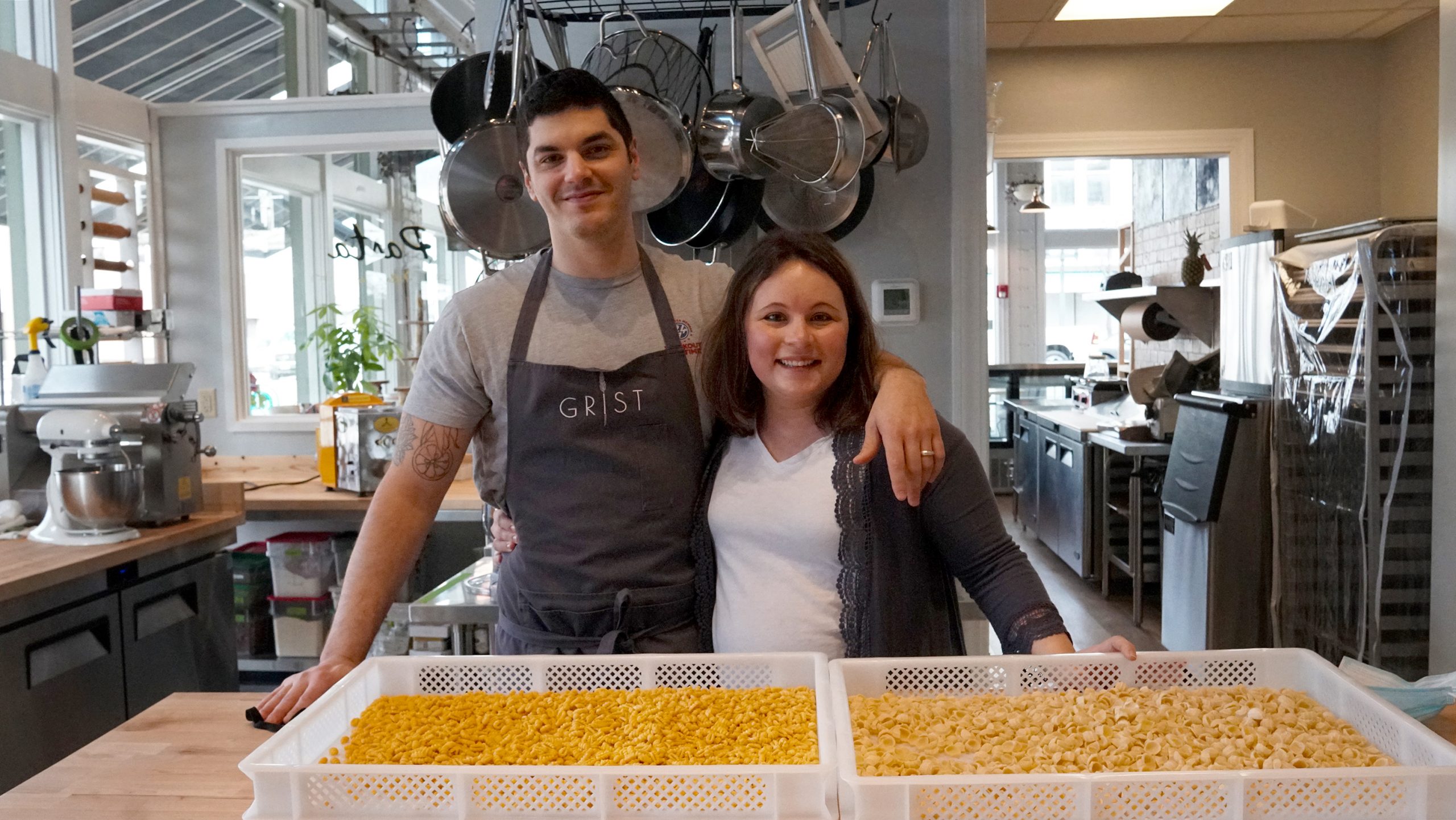 My name is Patrick Van Voorhis, and my wife Casey and I run Grist. We met in culinary school at the Culinary Institute of America in Hyde Park, New York, and we later took a leap of faith to open a business! The vision behind Grist is to provide a product for people who need a little bit of help cooking at home. We are pasta fanatics and came up with the concept for an easy outlet for really good food and we work with local farms to incorporate local ingredients. The term Grist has a few meanings. The philosophical meaning is the heart or the foundation of the family. Hopefully we create an environment for people to create this experience at home. Grist offers fine-dining caliber bread, pasta, and specialty provisions, along with a menu of salads, sandwiches, desserts and more.