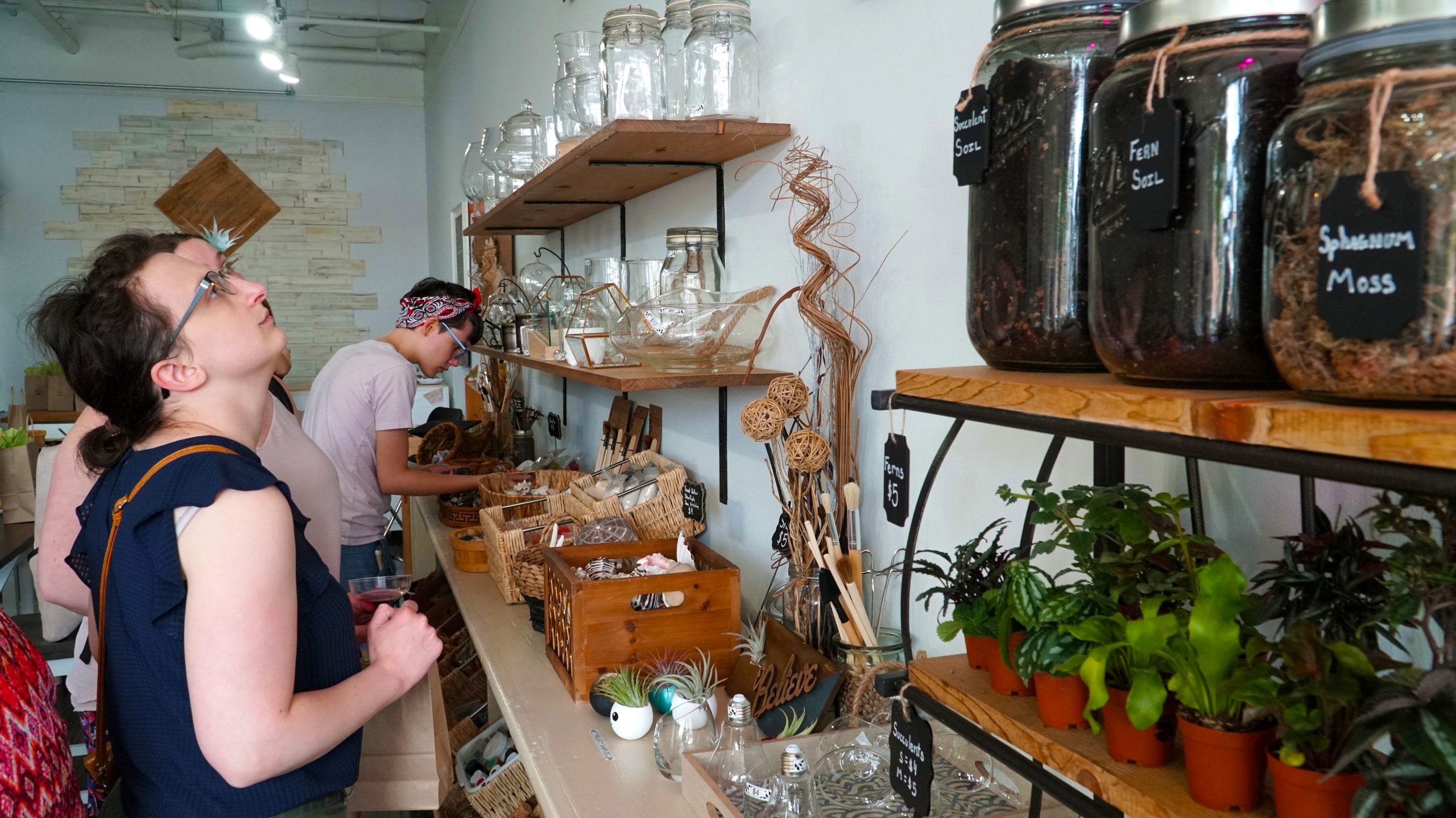 Now and Zen DIY Studio started five years ago at the 2nd Street Market. We started as a temporary vendor and moved into a full time spot, selling designs we made and a large variety of air plants. Along the way, we incorporated terrarium building workshops and would rent workshop venues. The terrariums became very popular, and last year we decided we needed a workshop location to complement the existing location at 2nd Street Market. We have always enjoyed working with nature, and we’ve found many others with similar interests. Some needed assistance making their own terrariums, and that’s why we created the terrarium bar.