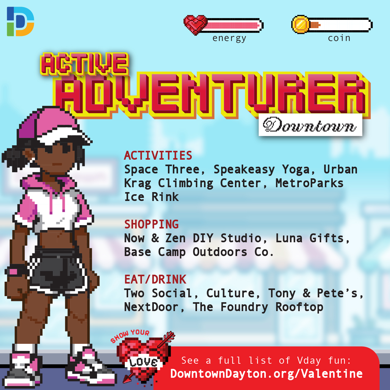 Select your character to see suggestions for a love-filled February in Downtown Dayton!